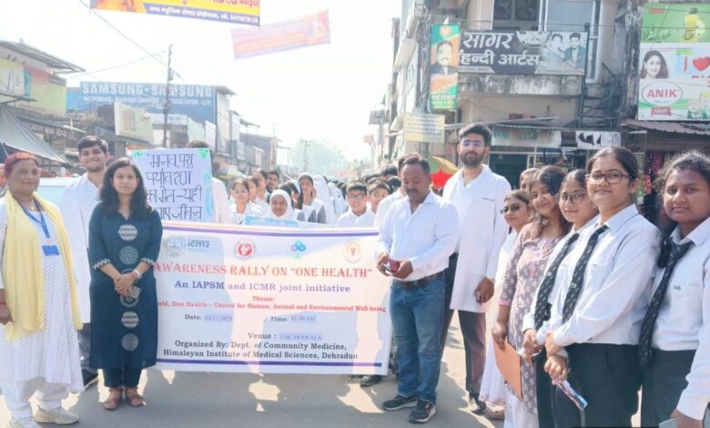 डोईवाला। हिमालयन इंस्टीट्यूट ऑफ मेडिकल साइंसेज (एचआईएमएस) जौलीग्रांट की ओर से वन हेल्थ जागरूकता रैली निकाली। इसमें एमबीबीएस और नर्सिंग के छात्र-छात्राओं ने बढ़-चढ़कर हिस्सा लिया।