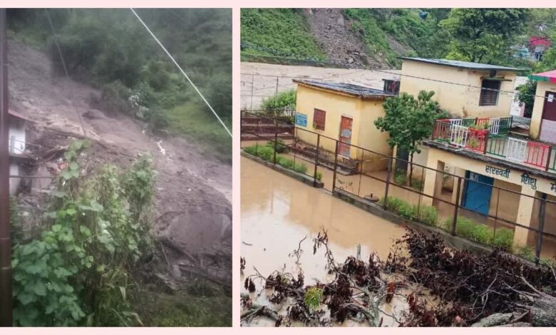 भूस्खलन के कारण स्कूल व दुकानों में घुसा पिंडर का पानी