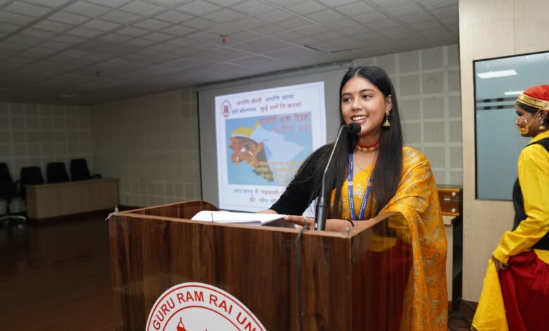 देहरादून। श्री गुरु राम राय विश्वविद्यालय, मानविकी एवं सामाजिक विज्ञान संकाय के अंतर्गत गढ़वाली भाषा एवं संस्कृति विभाग द्वारा मंगलवार को गढ़वाली भाषा दिवस का भव्य आयोजन किया गया। पथरीबाग परिसर के सभागार में आयोजित इस कार्यक्रम में गढ़वाली गीत, नृत्य और कविताओं ने ऐसा सांस्कृतिक वातावरण रचा कि उपस्थित जनसमूह मंत्रमुग्ध हो उठा।