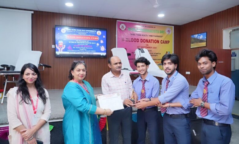 मुख्य अतिथि के.एस. फर्सवान ने अपने प्रेरक उद्बोधन में कहा कि फार्मासिस्ट केवल दवा वितरक नहीं होते, बल्कि समाज और स्वास्थ्य सेवा प्रणाली के एक मजबूत स्तंभ हैं। गुणवत्तापूर्ण स्वास्थ्य सेवाओं तक पहुँच, जनकल्याण और वैज्ञानिक दृष्टिकोण को बढ़ावा देने में फार्मासिस्ट की अहम भूमिका है। उन्होंने छात्रों को इस क्षेत्र में समर्पण, नैतिकता और उच्च गुणवत्ता के साथ आगे बढ़ने की प्रेरणा दी। कार्यक्रम के दौरान स्कूल ऑफ फार्मास्यूटिकल साइंसेज द्वारा श्री महंत इन्दिरेश अस्पताल के ब्लड बैंक के सहयोग से रक्तदान शिविर का भी आयोजन किया गया, जिसमें 50 यूनिट रक्त एकत्र हुआ। इस अवसर पर विश्वविद्यालय के शिक्षकगण, कर्मचारीगण एवं छात्रगण बड़ी संख्या में उपस्थित रहे। कार्यक्रम का समापन धन्यवाद ज्ञापन के साथ हुआ।