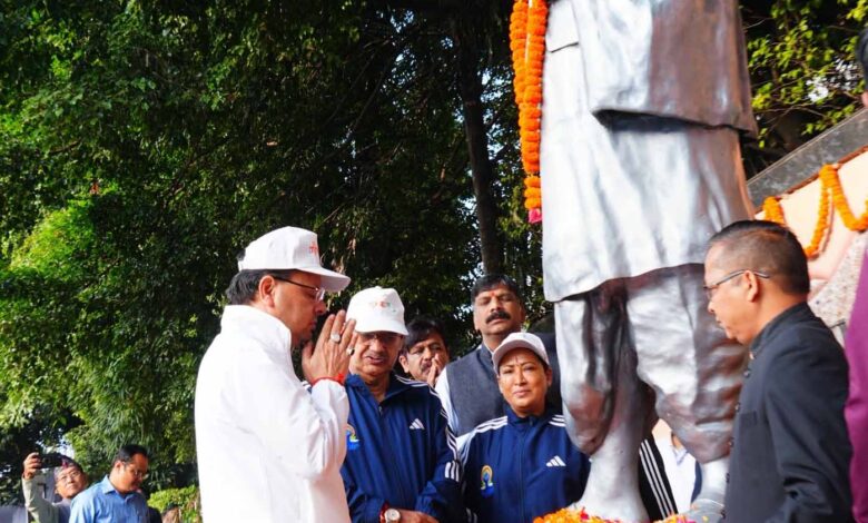 देहरादून। लौह पुरूष सरदार बल्लभ भाई पटेल की जयन्ती के मौके पर यूनिटी मार्च वॉकथॉन का देहरादून में आयोजन किया गया। मुख्यमंत्री पुष्कर सिंह धामी ने शुक्रवार को घंटाघर में उनकी मूर्ति पर श्रद्धा सुमन अर्पित कर श्रद्धांजलि दी। साथ ही एकता पदयात्रा का शुभारंभ कर उसमें प्रतिभाग भी किया। इस दौरान सीएम धामी ने युवाओं को स्वदेशी अपनाने और नशा मुक्त उत्तराखंड की शपथ भी दिलाई। इस दौरान बड़ी संख्या में लोग शामिल हुए।